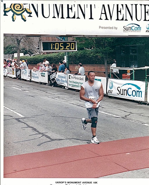 It starts with all of us, someone asks. Being a varsity basketball player in high school, Elliott kept that going and played in the city leagues around Richmond. A friend of his who worked with him at the City of Richmond (we still think of you as the unofficial mayor, Elliott) asked him to run the Monument Avenue 10K one year, to that point he would just run on the treadmill to keep in shape for basketball. He agreed a year later and started training by seeing if he could run for 30 minutes.
